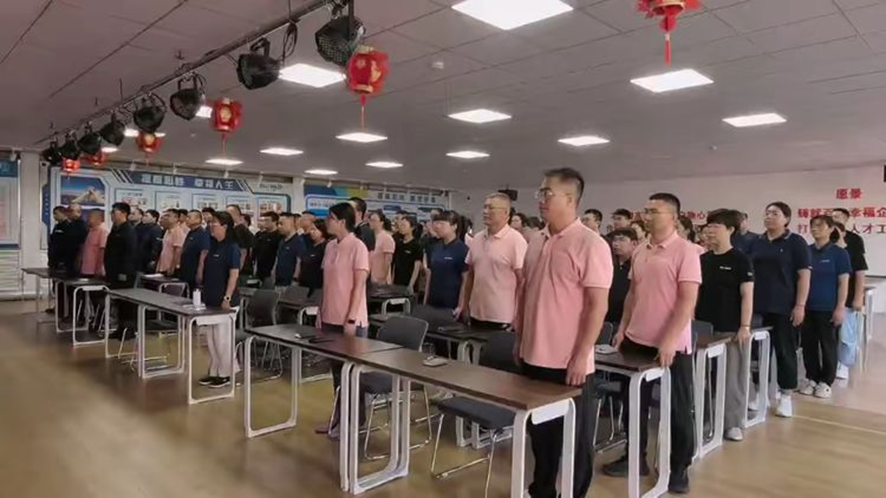 當(dāng)雄壯的國歌聲響起,公司領(lǐng)導(dǎo)班子成員和全體員工整齊起立,高唱中華人民共和國國歌,表達(dá)對偉大祖國的崇高敬意。