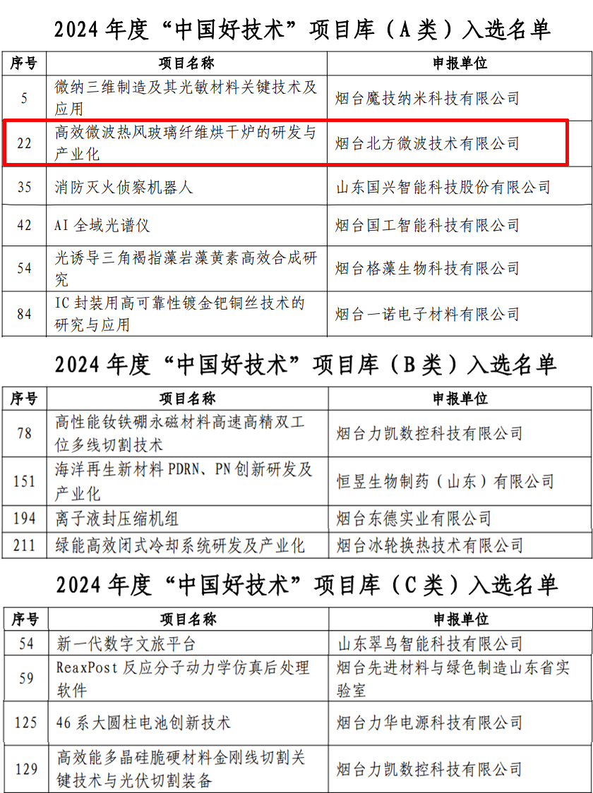 煙臺北方微波技術有限公司憑借“高效微波熱風玻璃纖維烘干爐的研發(fā)與產(chǎn)業(yè)化”項目,從眾多參評技術中脫穎而出,成功入選“中國好技術”A類項目庫,彰顯了其在工業(yè)微波能應用領域的卓越創(chuàng)新實力。